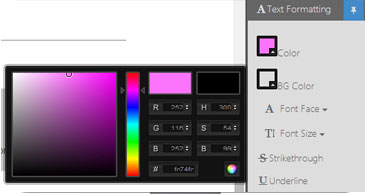 In this update, the requested font changes are in. If you go to the Text Formatting category, you will now see Font Color, Font Face, and Font Size. Just highlight your text and select these options and poof- they'll just work. You can also add new folders by going to the "New+" button on the bottom and then selecting "Create Folder". Once you name your folder, it will appear. Lastly, you can now make hyperlinks to other sites using the Hyper Link tool and selecting the "External" tab.